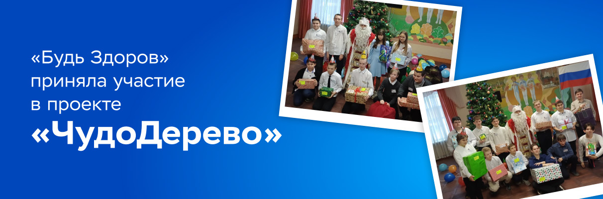 В преддверии Нового года сотрудники компании «Будь Здоров» уже в четвертый раз приняли участие в акции «ЧудоДерево», которую проводит благотворительный фонд «Детские домики». 24 декабря в ходе праздничного концерта 54 воспитанника Калужской школы-интерната № 1 для детей с ограниченными возможностями здоровья получили новогодние подарки.
